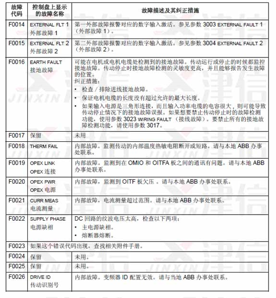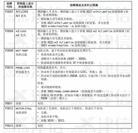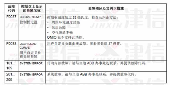 可以通過MENU/ENTER鍵來清除故障信息。如果故障依然存在,故障信息會在幾秒鐘后再次出現(xiàn)。此時(shí)需要根據(jù)故障代碼來進(jìn)行相應(yīng)的檢查和采取應(yīng)對措施。