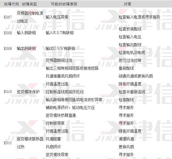2,故障代碼E007,E008,E009,E010,E011?