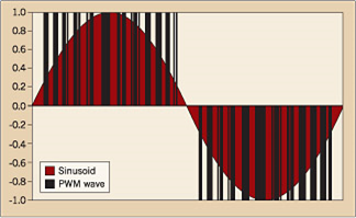 脈波寬度調(diào)變(PWM)變頻器是工業(yè)中最常用的,因為固定的直流母線電壓具有出色的輸入功率因數(shù),沒有電機齒槽效應(yīng),效率更高,成本更低。PWM 變頻器使用一系列不同長度的電壓脈沖來模擬正弦波。理想情況下,脈沖定時,以便驅(qū)動器的時間平均積分產(chǎn)生完美的正弦曲線。產(chǎn)生該波形的當(dāng)前選擇方法是通過比較器運行三角波和正弦波,并且只要正弦波的值大于三角波,就輸出電壓脈沖。用于產(chǎn)生電壓脈沖的當(dāng)前電氣元件是絕緣柵雙極晶體管(IGBT),盡管可控硅整流器(SCR)也可以工作。在不久的將來,注入增強型柵極晶體管(IEGT)將用于執(zhí)行此任務(wù)。更長遠來說,憶阻器可能會成為這項任務(wù)的首選組成部分。